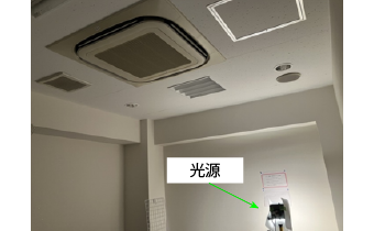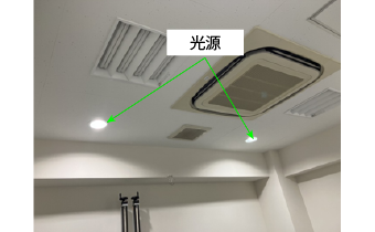 暗室にて天井の光源を用いて測定を実施しました。