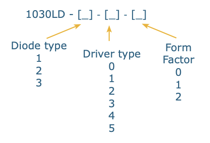 各出力のファイバーカップリングレーザーダイオードがどのレーザーダイオード電源に対応しているかは、製品情報を参照ください。