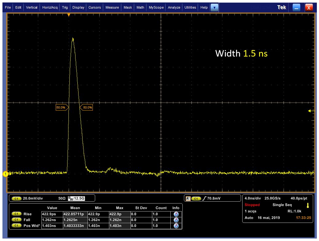 このファイバー光変調器はオンボードのパルスジェネレーターによる内部トリガに加え、外部TTL信号をトリガとして精密パルスを発振する事が出来ます